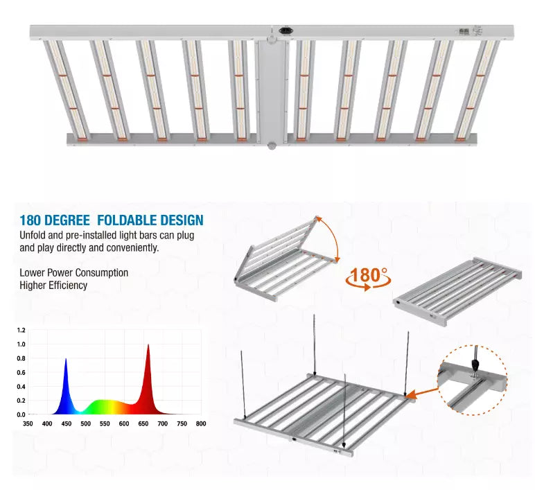 • LED Efficacy: 2.7μmol/J, Total PPF: 2835μmol/s