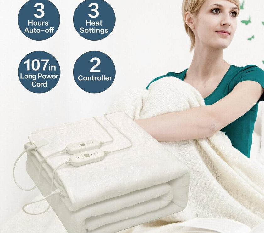 Featuring an easy-to-use slide controller with 0, 1, 2, 3 temperature settings switch, the Dreamaker Electric Fleece Blanket provides customizable warmth according to your preferences.The double helical heating wire ensures efficient heating, while the overheat protection system offers added peace of mind.With dual control settings, you can enjoy the perfect level of warmth without the need for dangerous electric heaters.