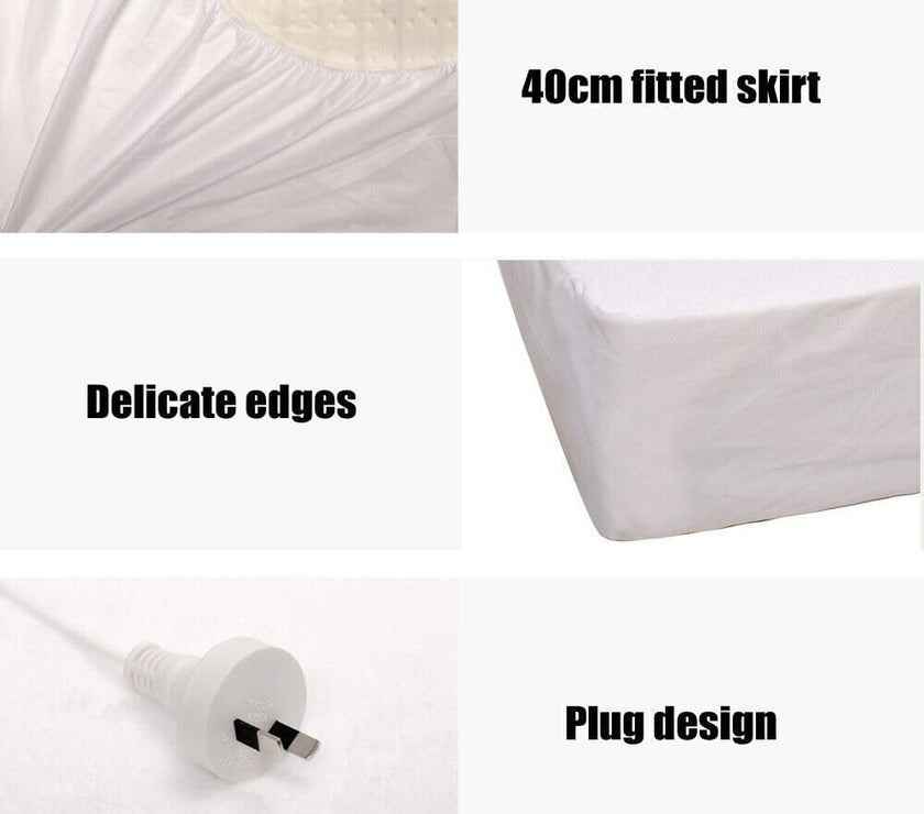 GROZY White Electric Blanket Double Sides Fleece Warm Soft Heated Under Pad Fully Fitted, Overheat Protection Adjustable 3 Heat Settings Detachable Controller Single Double Queen